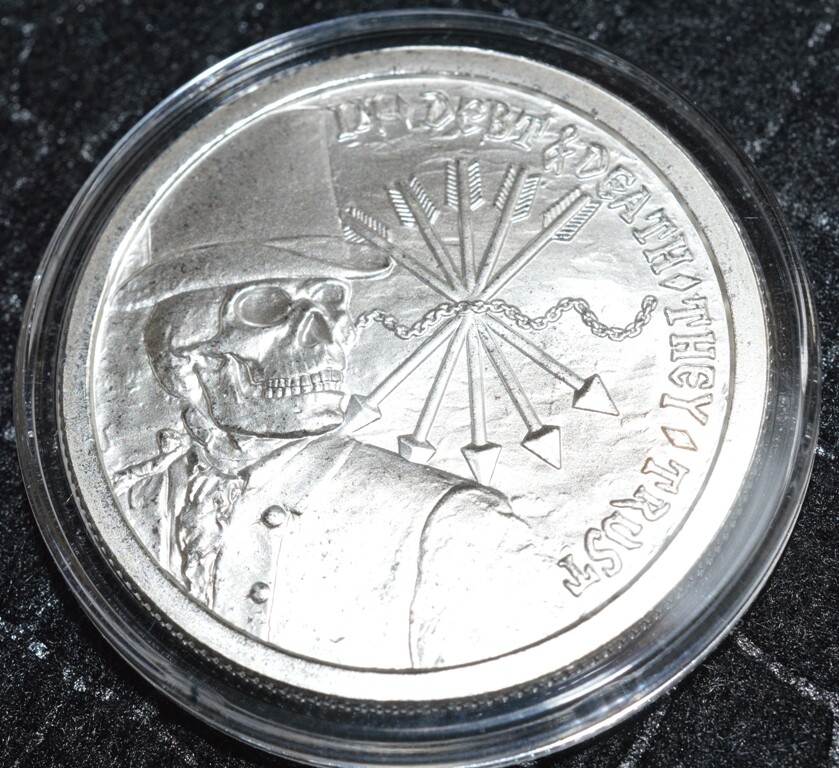 1 OZ SILVER BU 2013 SS DEBT AND DEATH ROUND IN AIRTIGHT CAPSULE