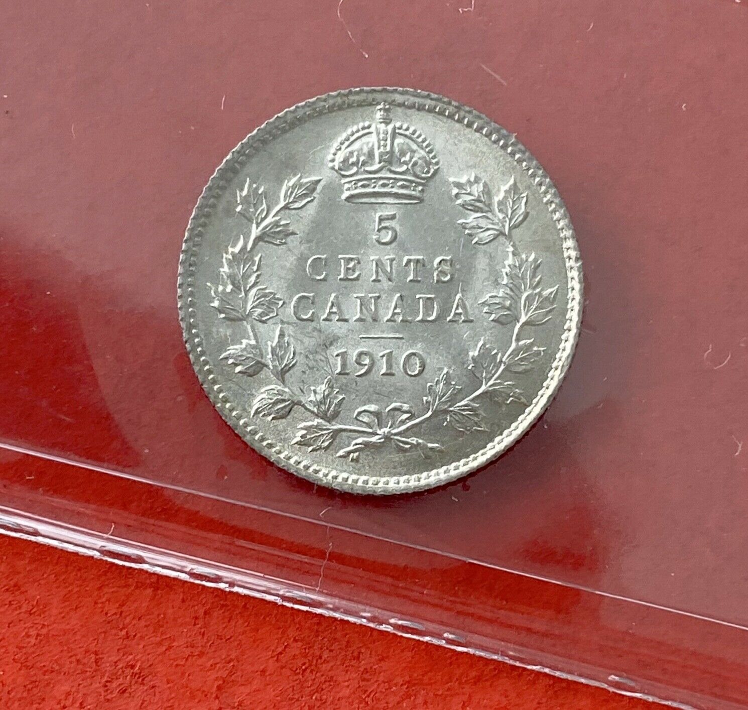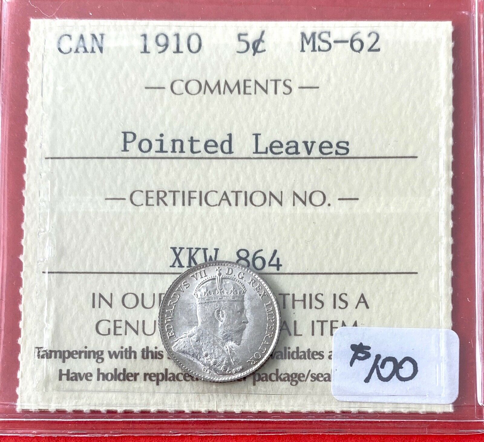 1910 Canada 5-cent ICCS Graded MS-62 Pointed Leaves