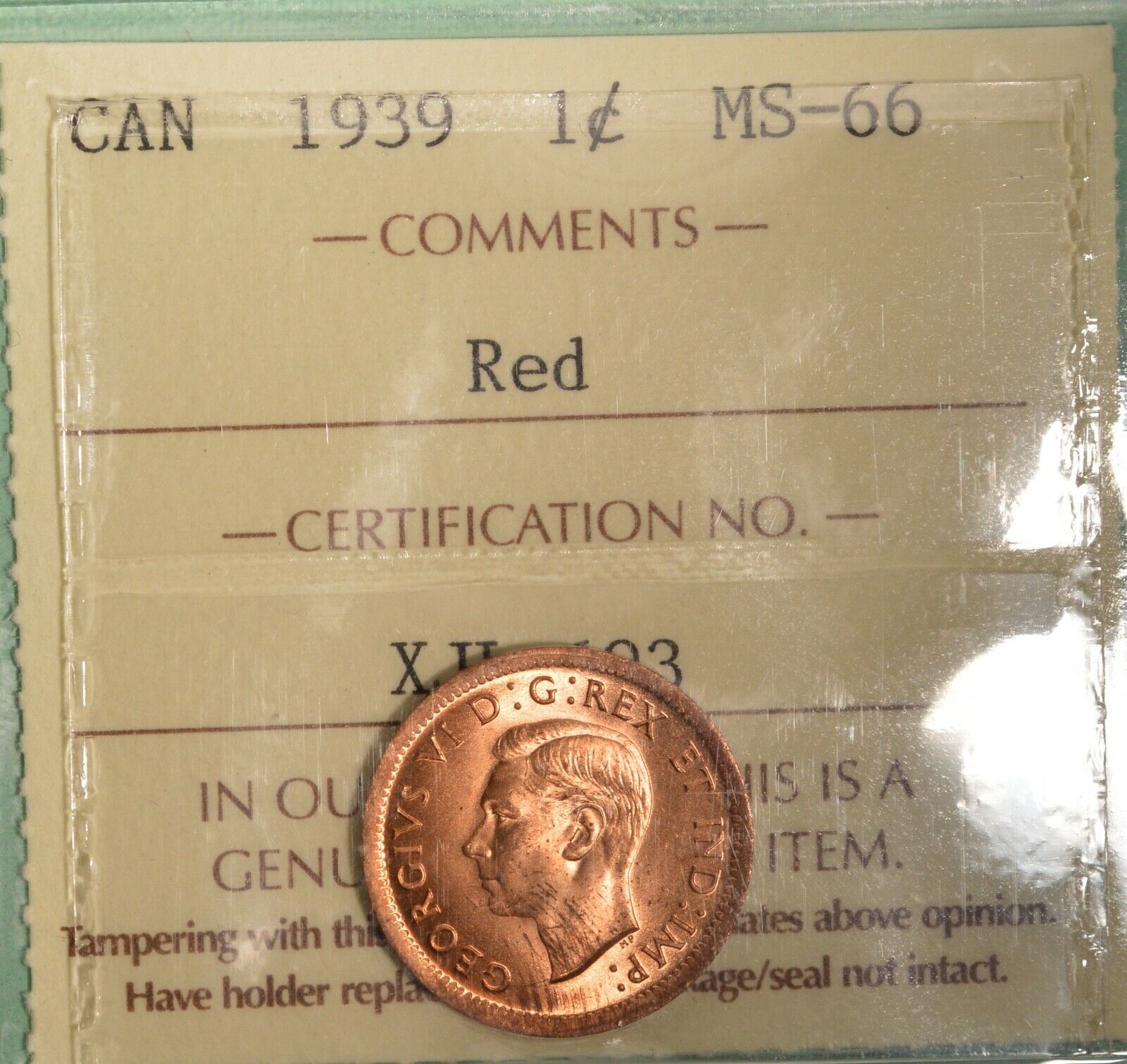 1939 Canada 1-Cent ICCS Graded MS66 RED