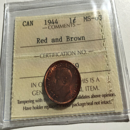 1944 Canada 1-Cent ICCS Graded MS63RB