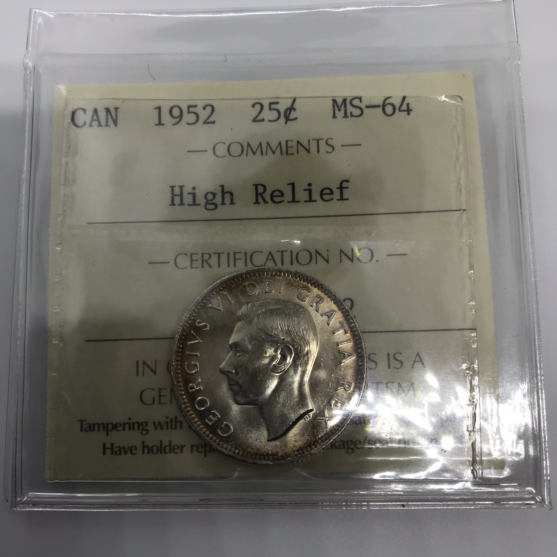 1952 Canada 25-Cent ICCS MS-64 High Relief