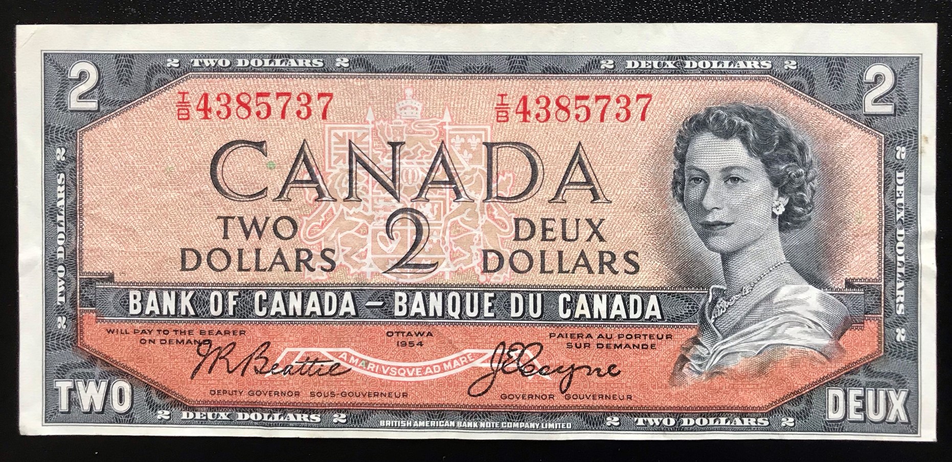 1954 $2 Devils Face I/B Prefix Beattie-Coyne BC-30b VF-EF Condition