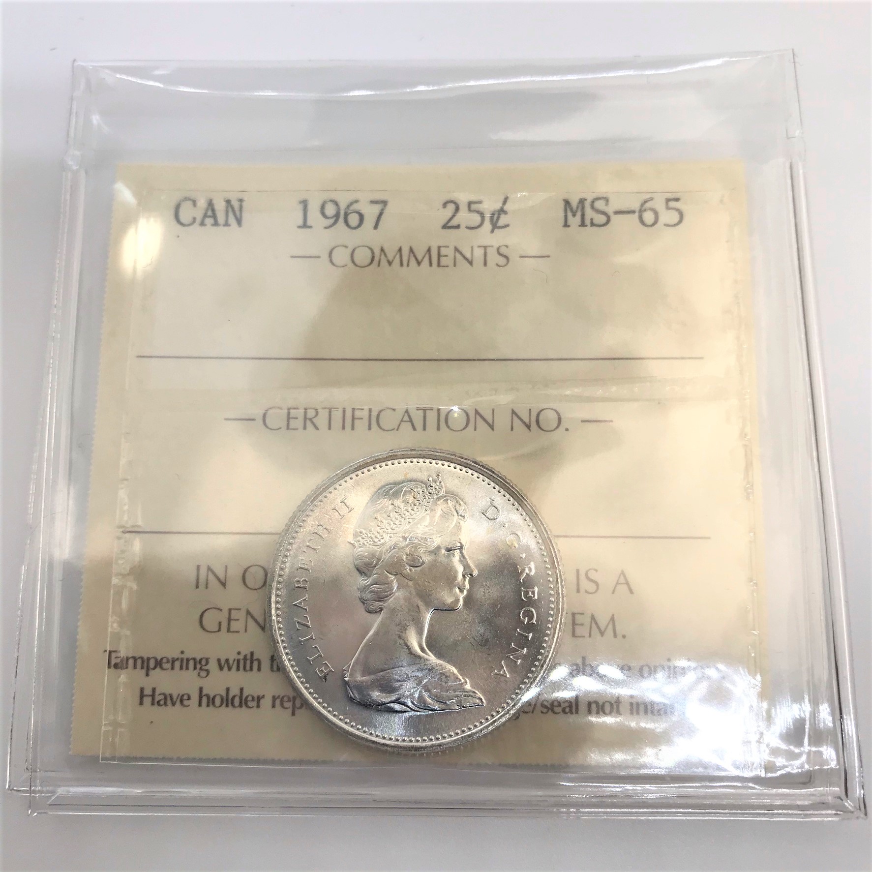 1967 Canada 25-Cent ICCS MS-65