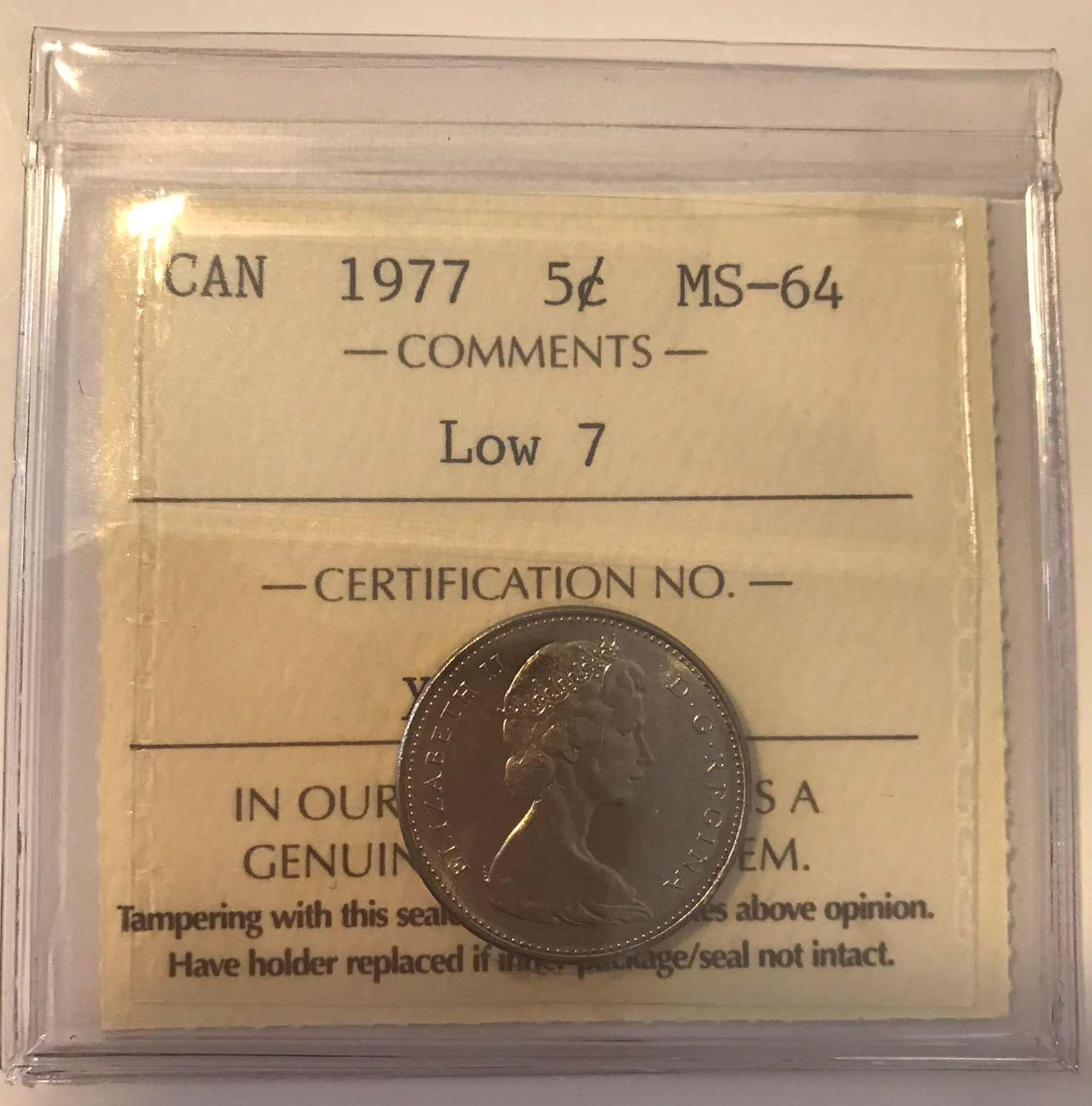 1977 Canada 5-cent ICCS MS-64 Low 7