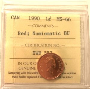 1990 Canada 1-Cent ICCS MS-66 RED NBU