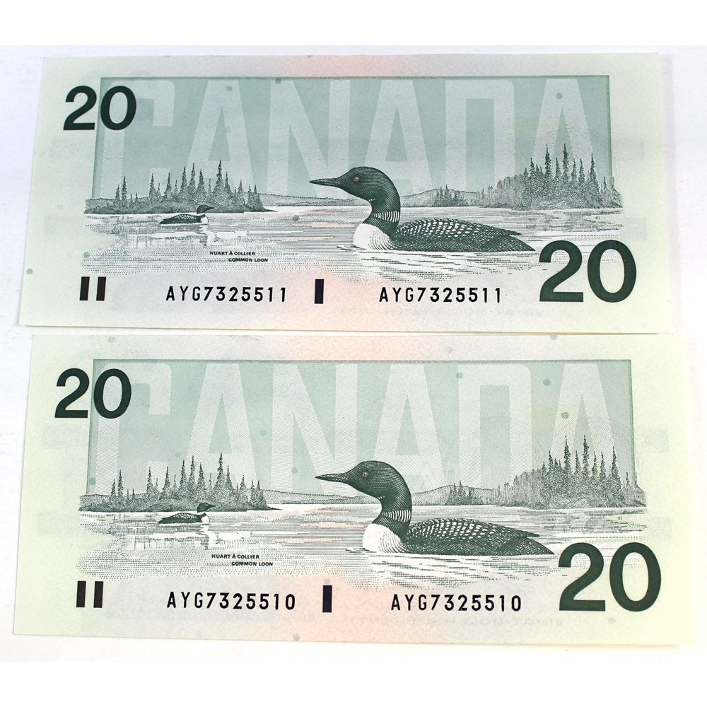 1991 $20 Knight-Dodge BC-58d – 2 x Consecutive UNC Notes