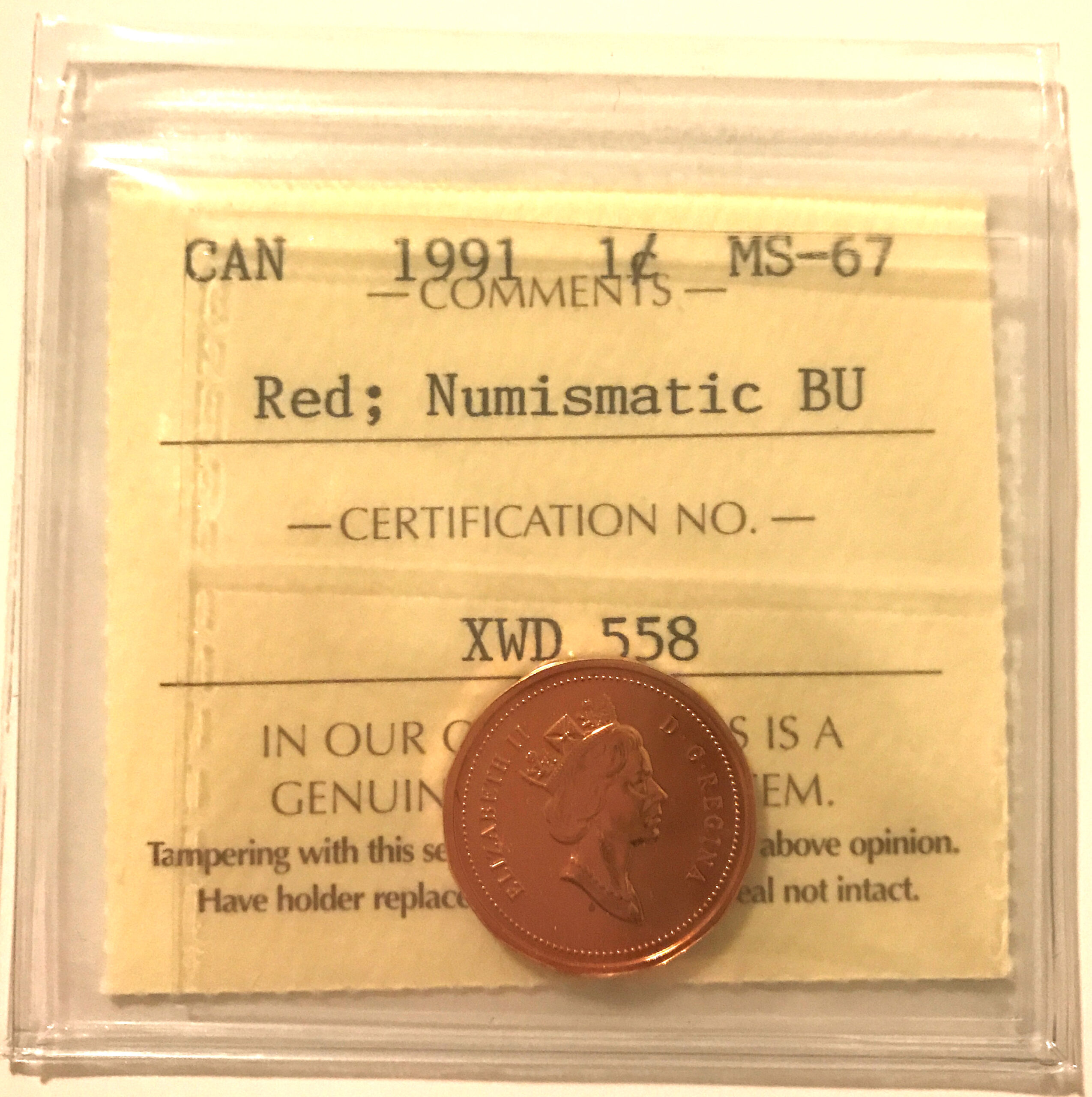 1991 Canada 1-Cent ICCS MS67 RED NBU