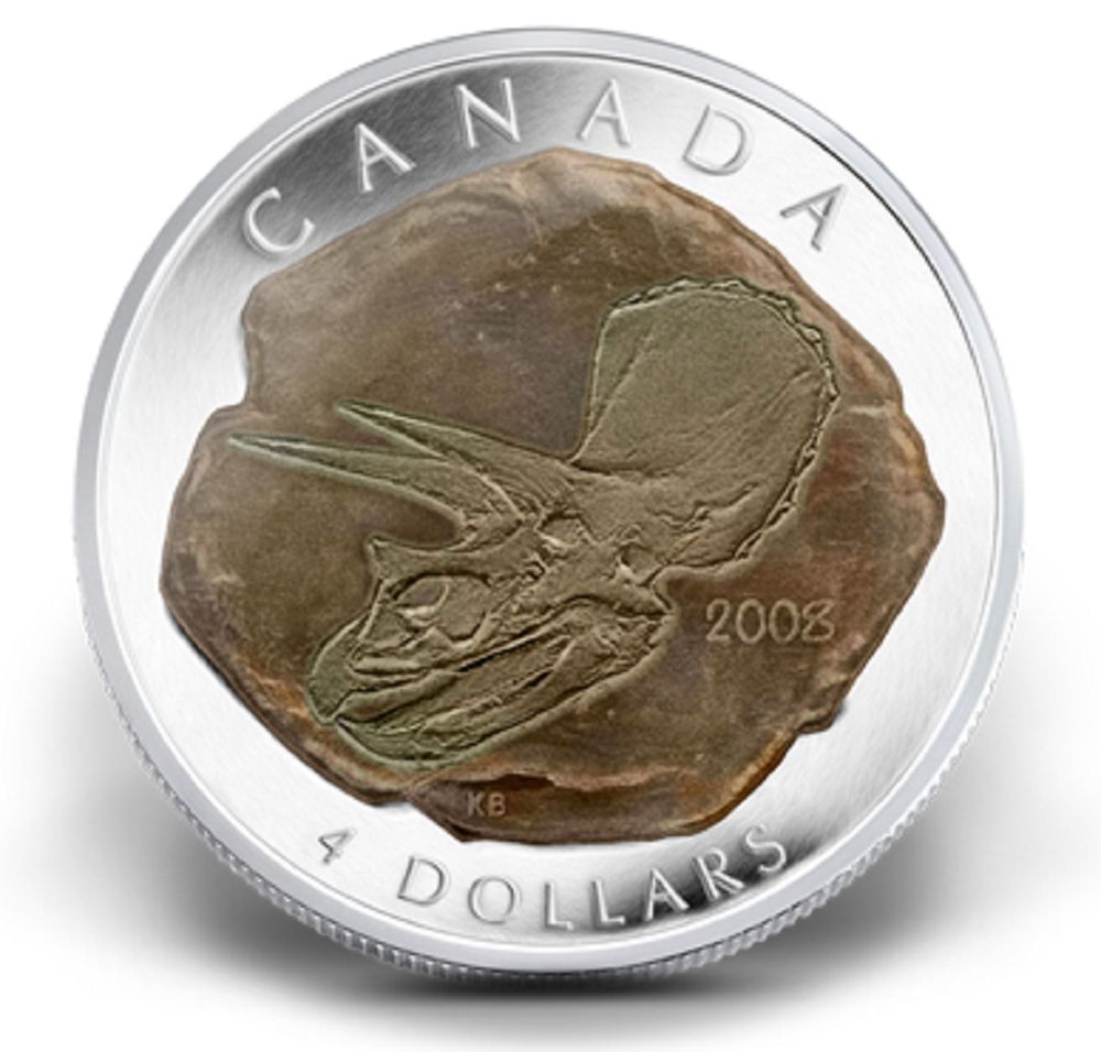 2008 $4 Canada Tricerotops Fossils of Canada Series Fine Silver Coin