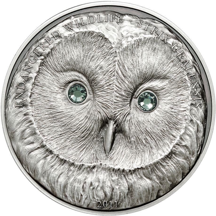 The sensational mints of the Mongolian Endangered Wildlife coin series have gained great popularity since its start in 2007. The issue dated 2011 contains an image of Ural Owl, a species with very particular face disc shape that inhabits many forests in Central Asia. The artwork of the designers is unbelievably beautiful– they managed to develop mints that give you the feel of a real animal.