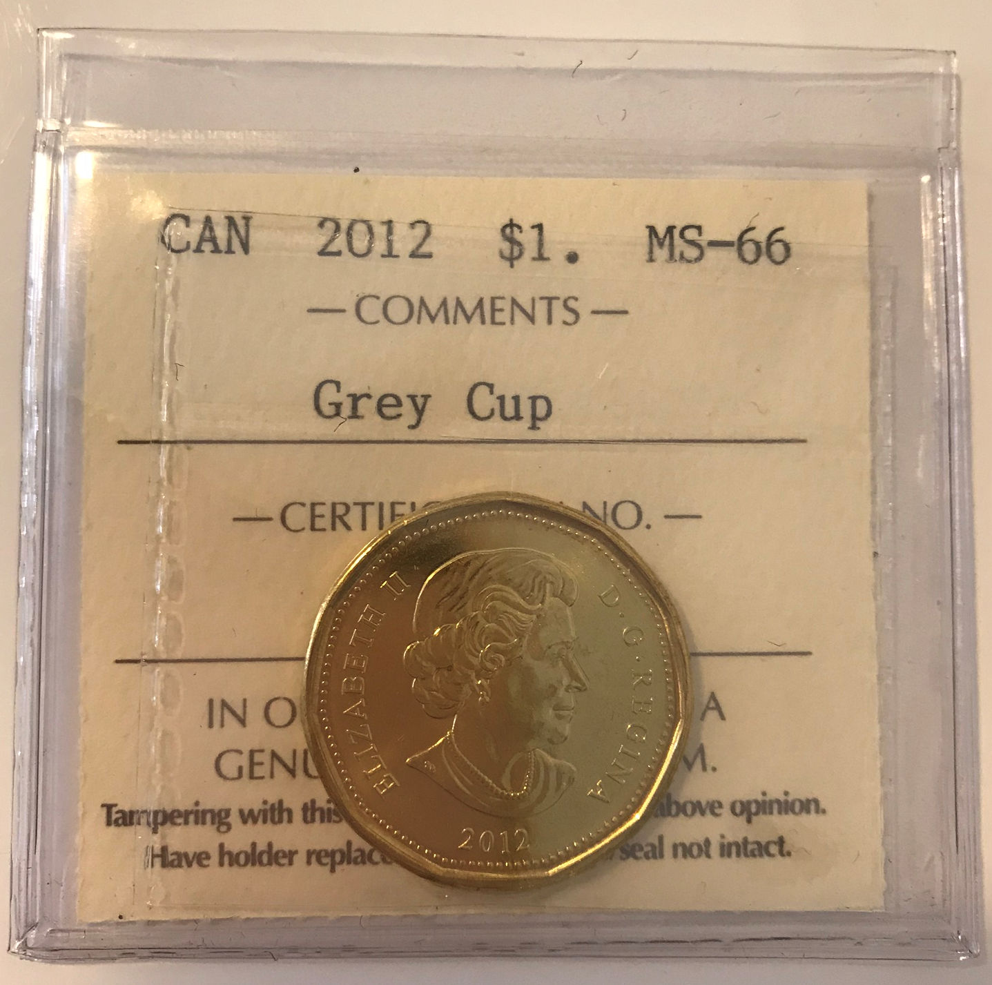 2012 Canada Grey Cup 1-dollar $1 ICCS MS-66