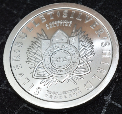 The Warbird is a mock of the most popular silver coin in the world, the American Silver Eagle. Once you get beyond the blind patriotism we parade around in to soothe our conscious, we are a nation that simply spreads debt and death around the world. Warbird is an evocative, conscious assault on the status quo that also questions why all of these silver stackers get rid of their dollars, only to buy from the US Treasury? The Silver Bullet Silver Shield is after all a conscious solution to collectivist problems.