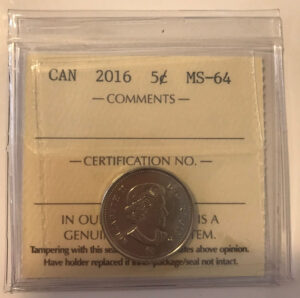 2016 Canada 5-cent ICCS MS-64