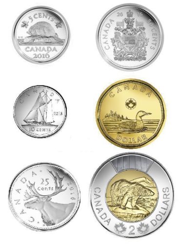 The set includes 6 coins, the original mint envelope and the certificate and includes the Scarce 2016 Loonie: