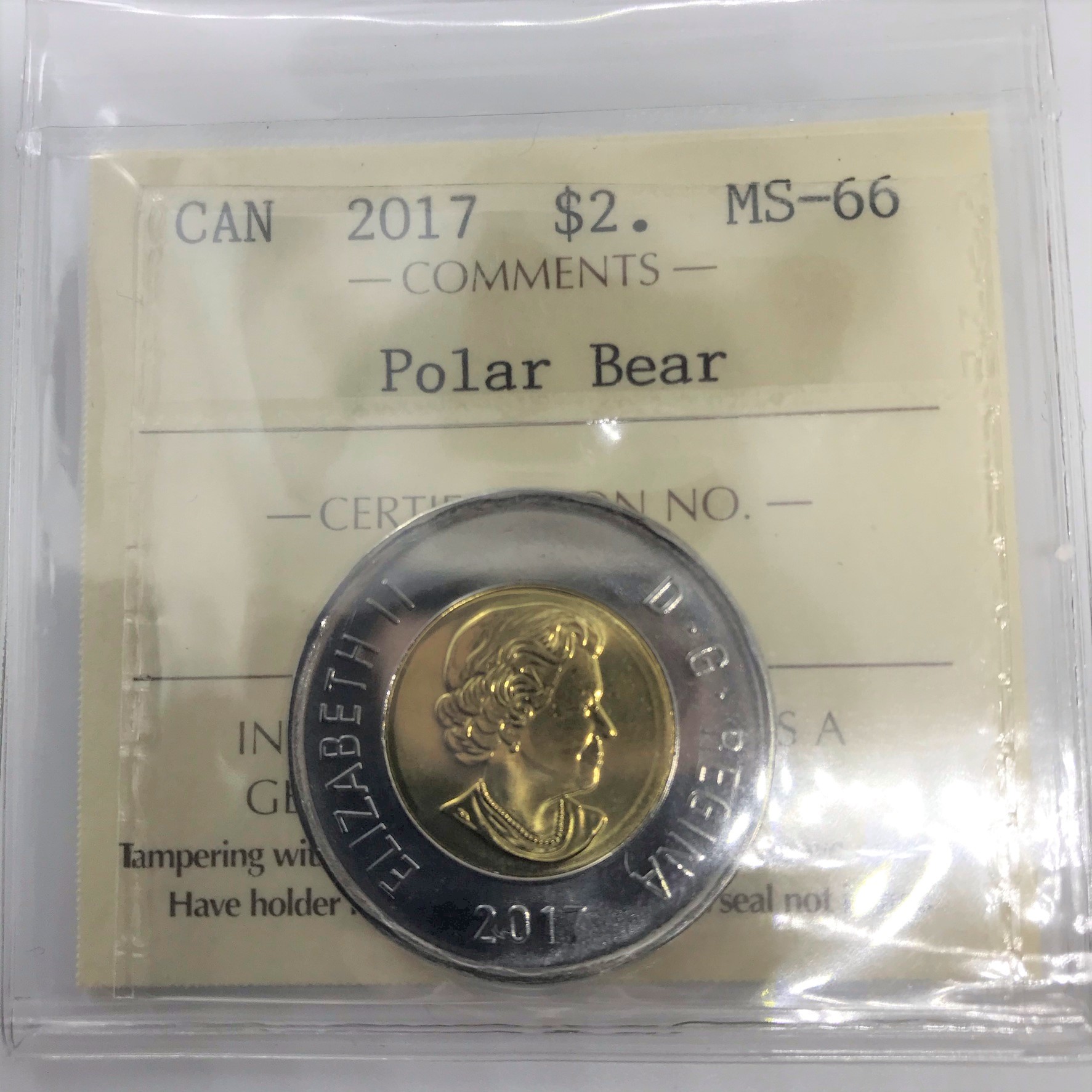 2017 Canada 2-dollar $2 Polar Bear ICCS MS66