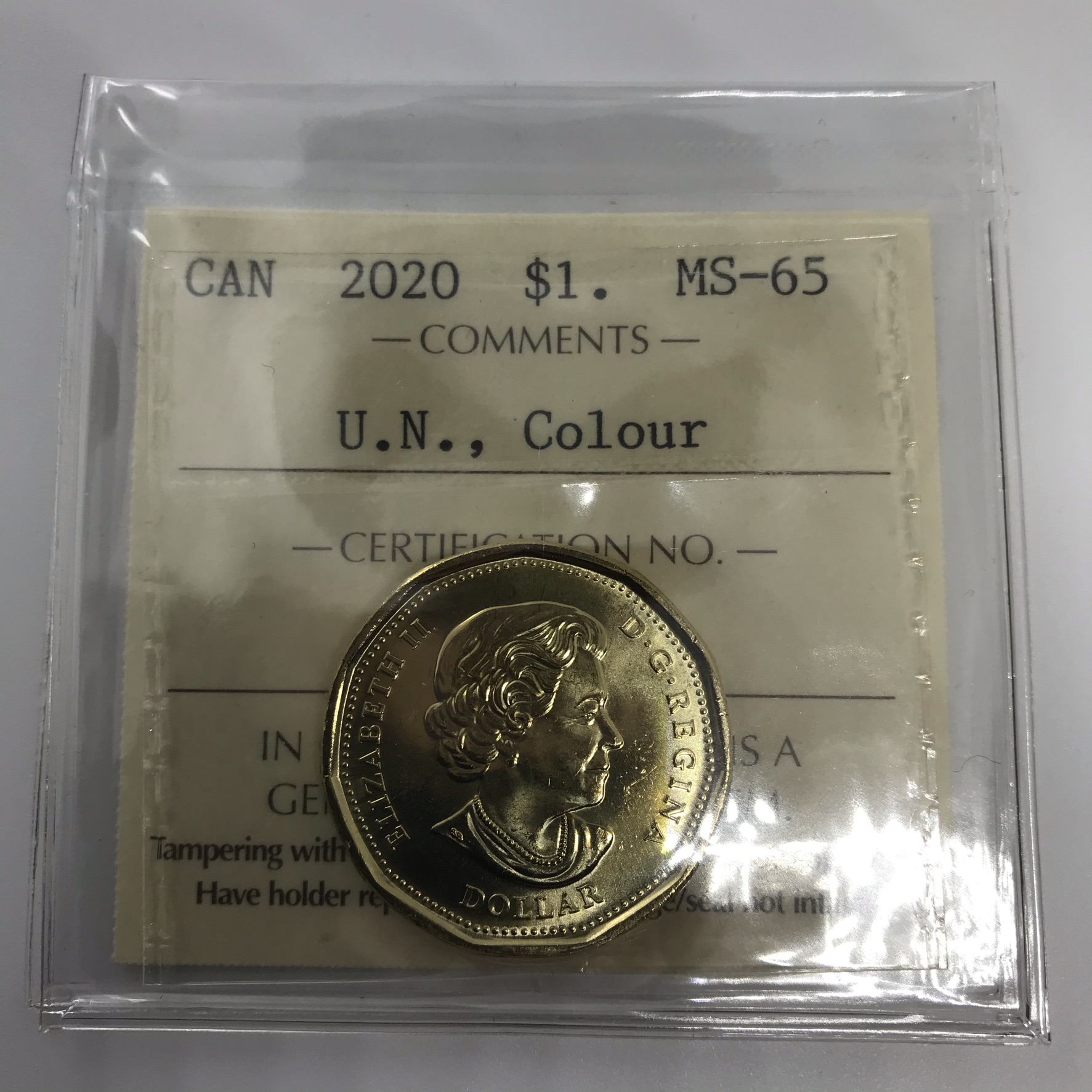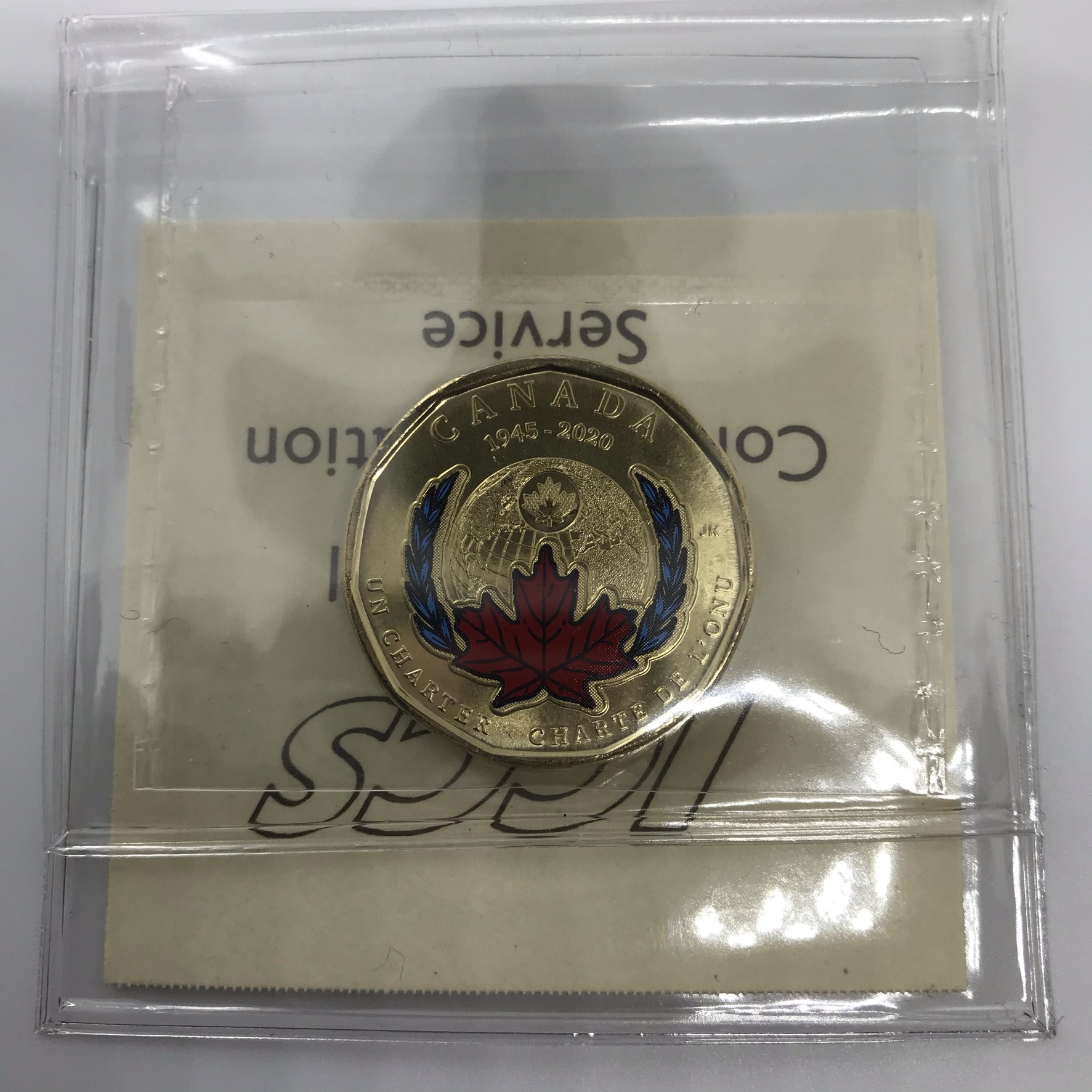 2020 Canada 1-dollar $1 U.N. Charter ICCS MS65 Colored Coin
