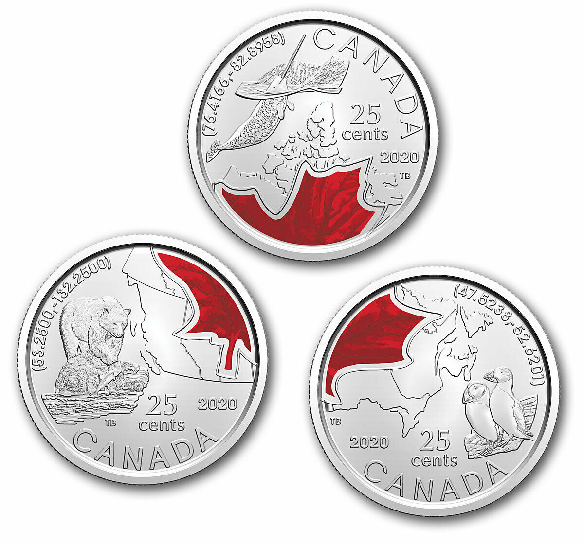 2020 Connecting Canada 3 Coin Colorized 25c Coin Set