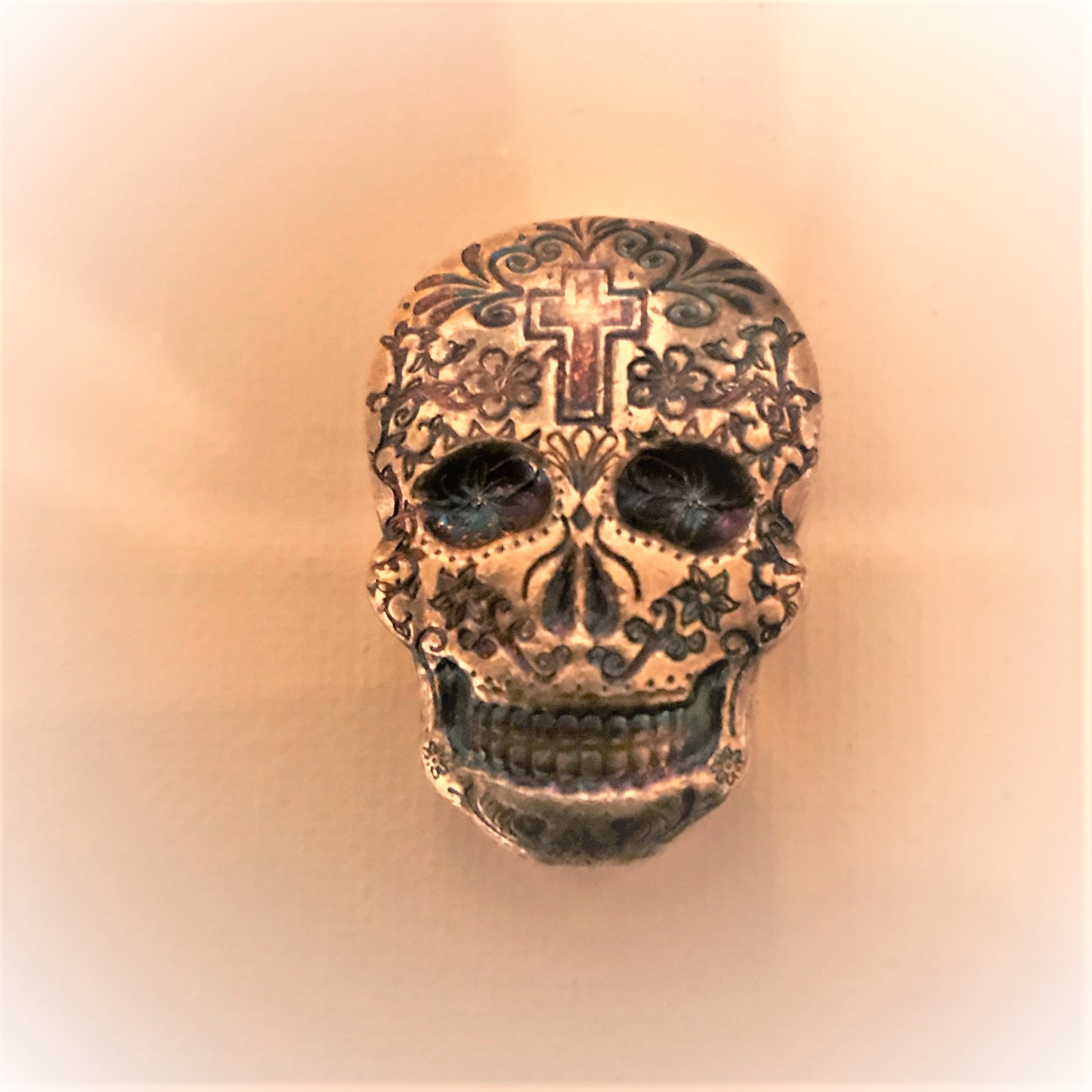 Monarch Hand Poured Cross 2oz Silver Skull