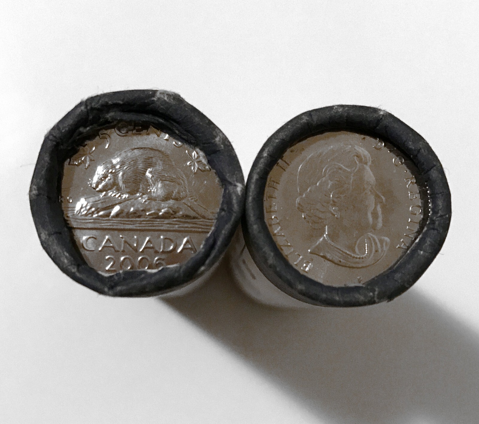 Each coin is composed of nickel and bears the denomination of 5 cents.