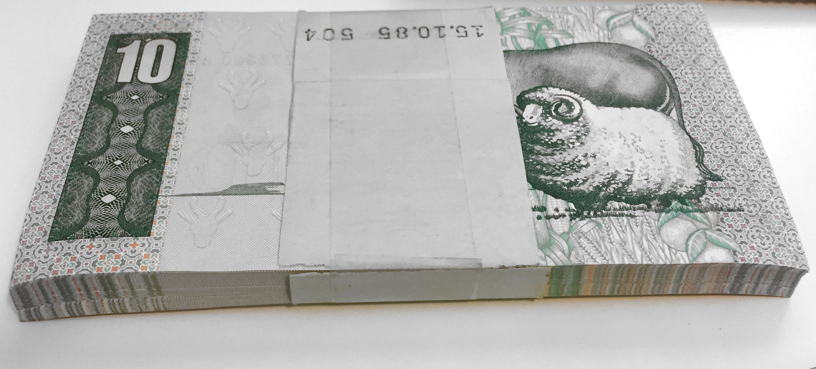 1985 South Africa Ten Rand Bundle of 100 UNC banknotes AJ1772201-2300